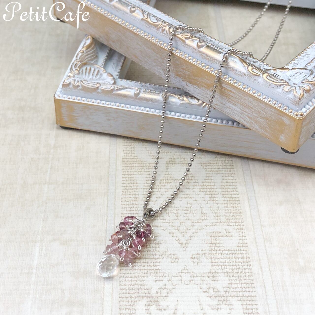 濃淡グラデーションのスピネル3.5mmボタンカットと水晶6mmティアドロップカットをあわせました。