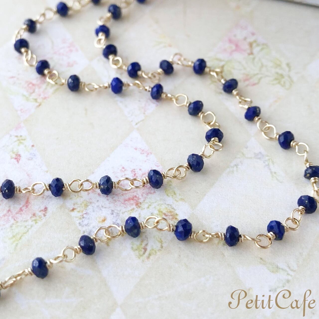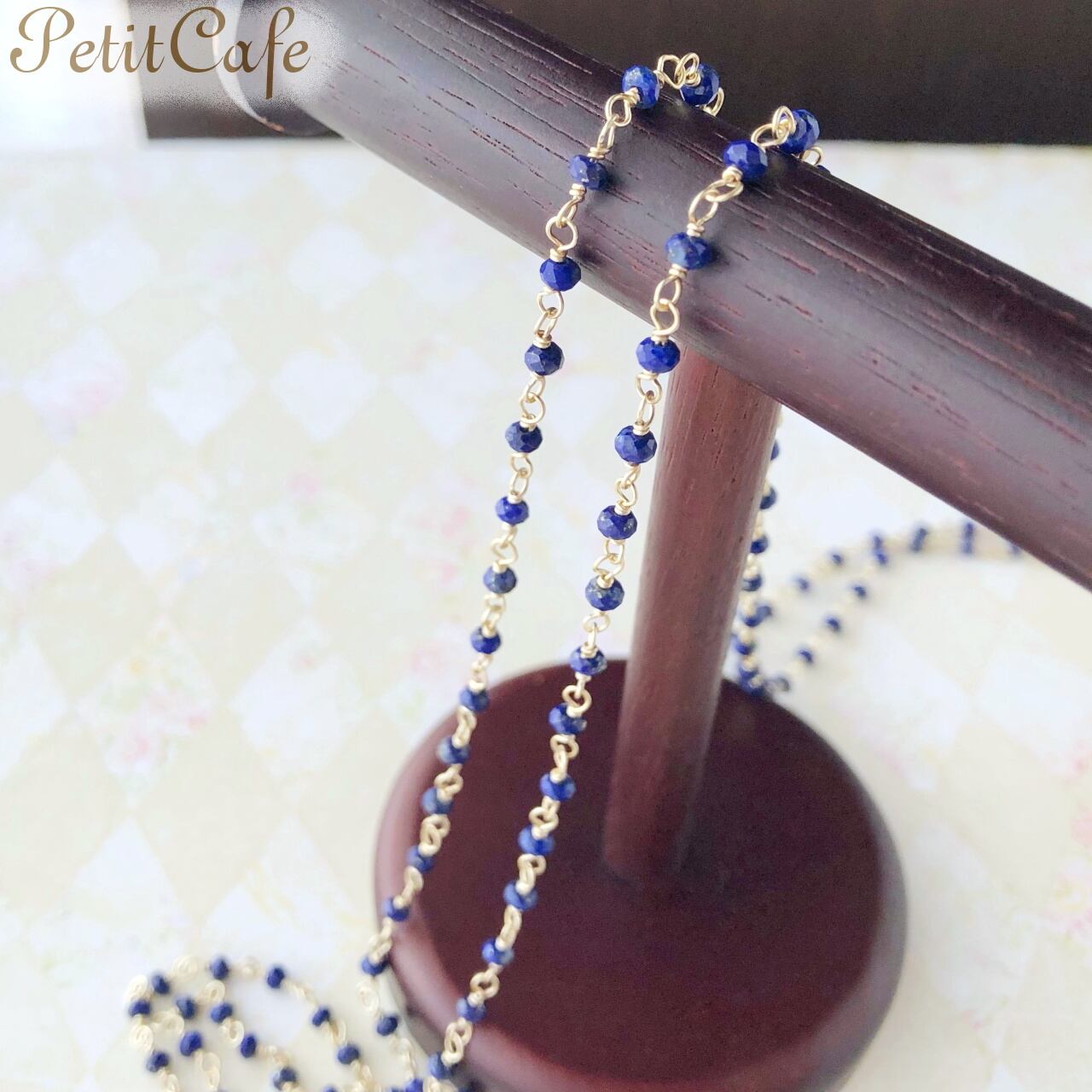 ラピスラズリの3mmボタンカットを繋ぎました。