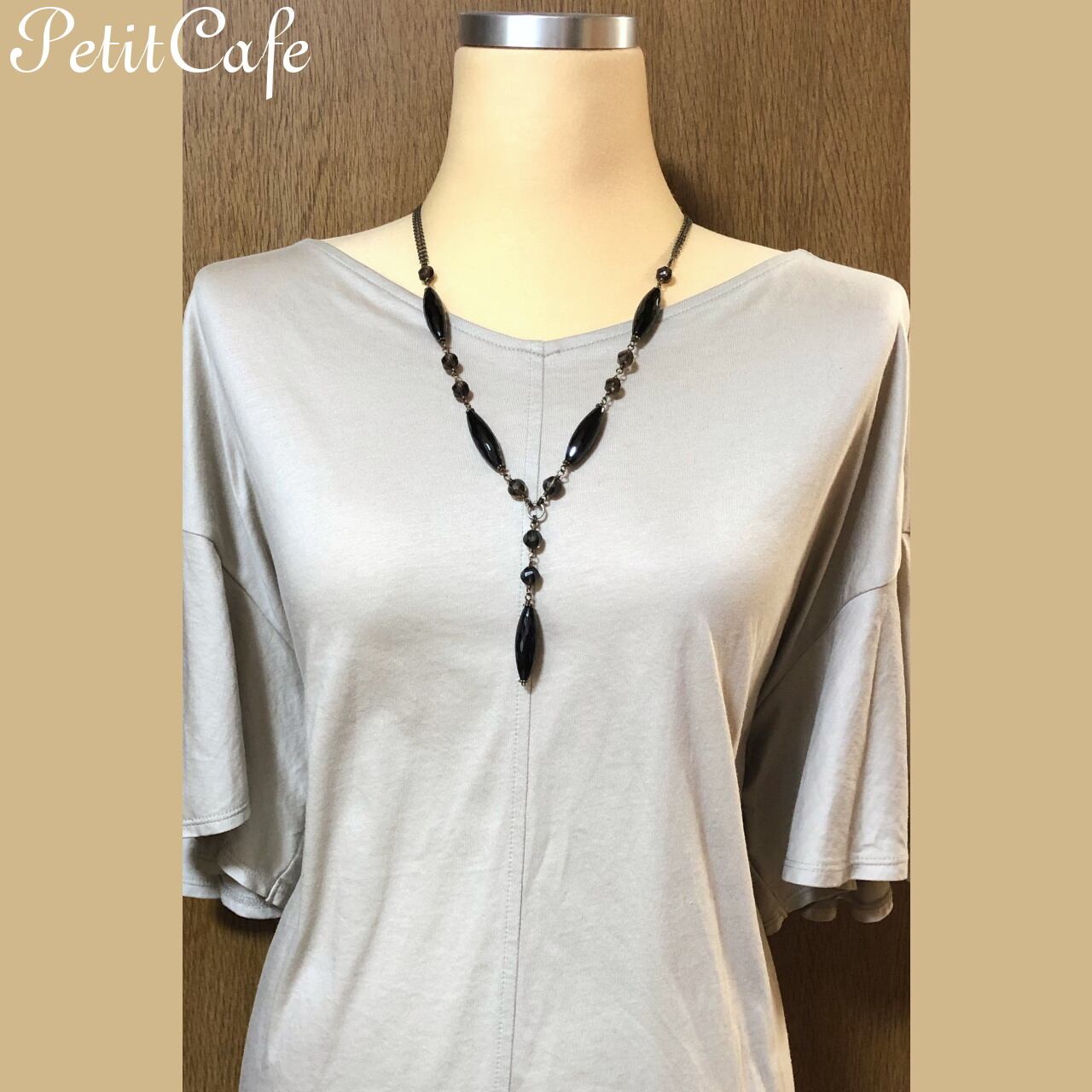 オニキスの30mm×10mmのライスカットとスモーキークォーツの8mm玉Sラインカットを合わせました。