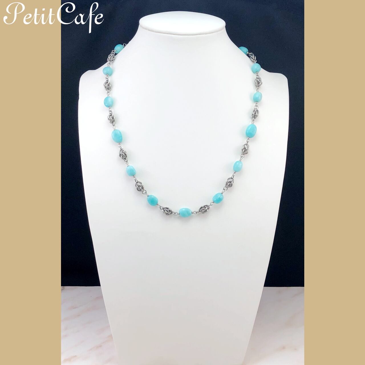 画像ではアマゾナイトの青みが少しだけ強く出てしまっていますが、綺麗な青緑色です。