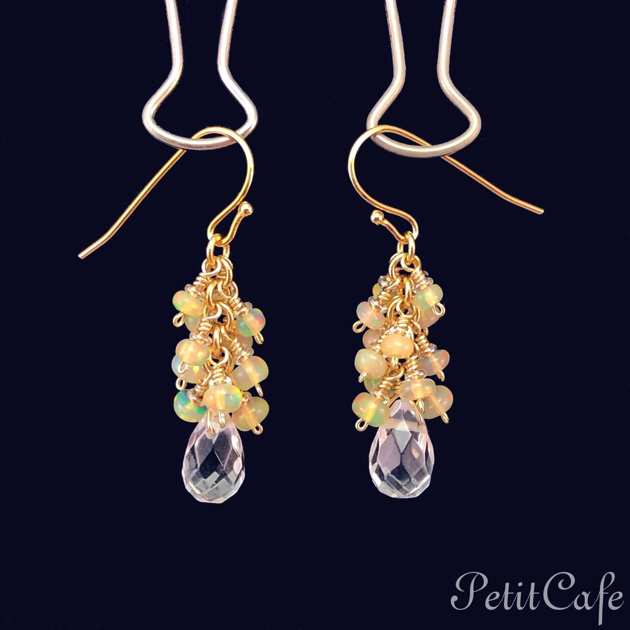 オパールの小さなボタン型を葡萄状に繋ぎました。