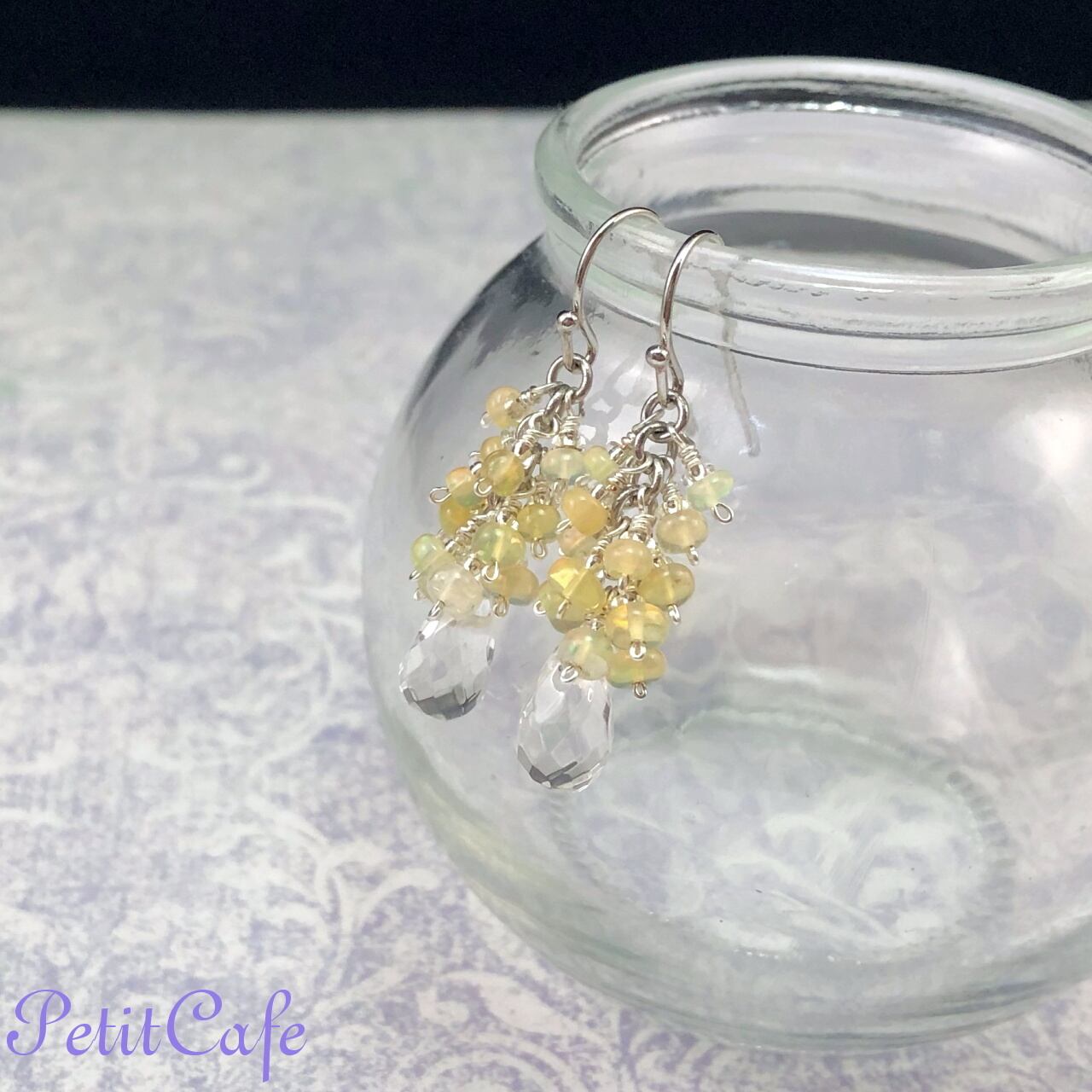 オパールの小さなボタン型を葡萄状に繋ぎました。