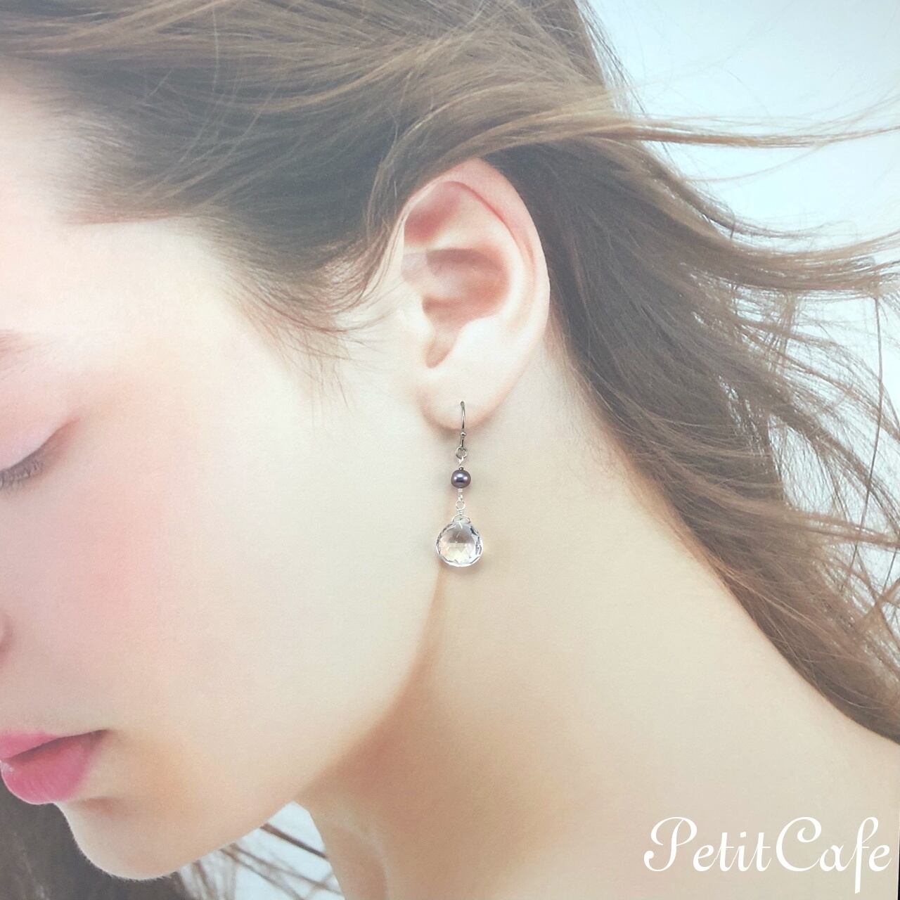 約10mmマロンカットの透明なトパーズと約4.5mmポテトの淡水パールを合わせました。