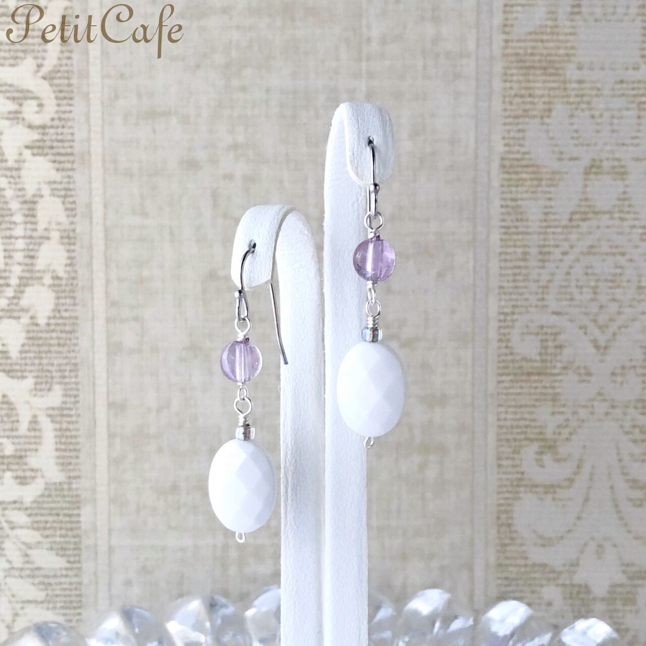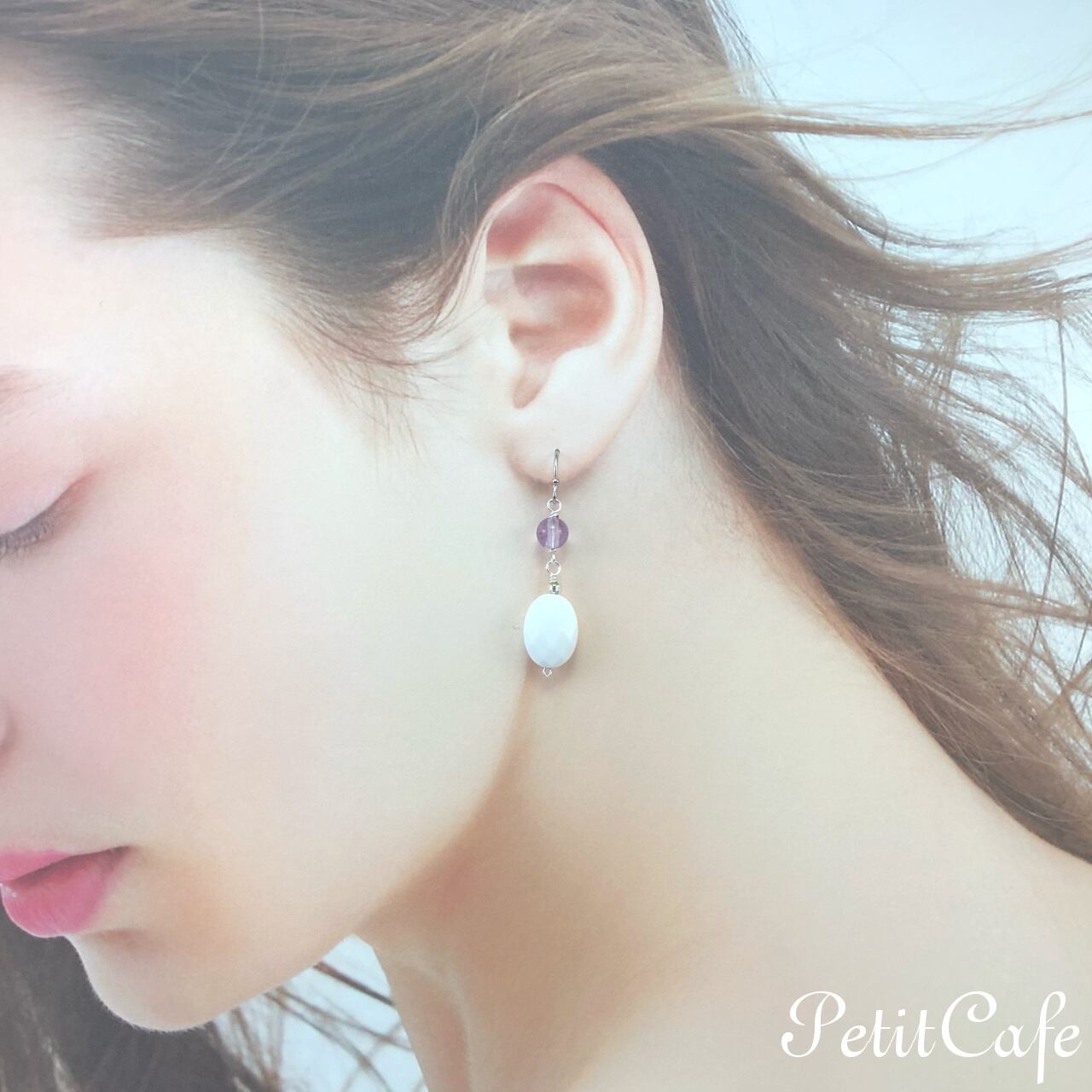 オーバルカット約10×14mmのホワイトオニキスと、6mm玉のアメシストを合わせました。