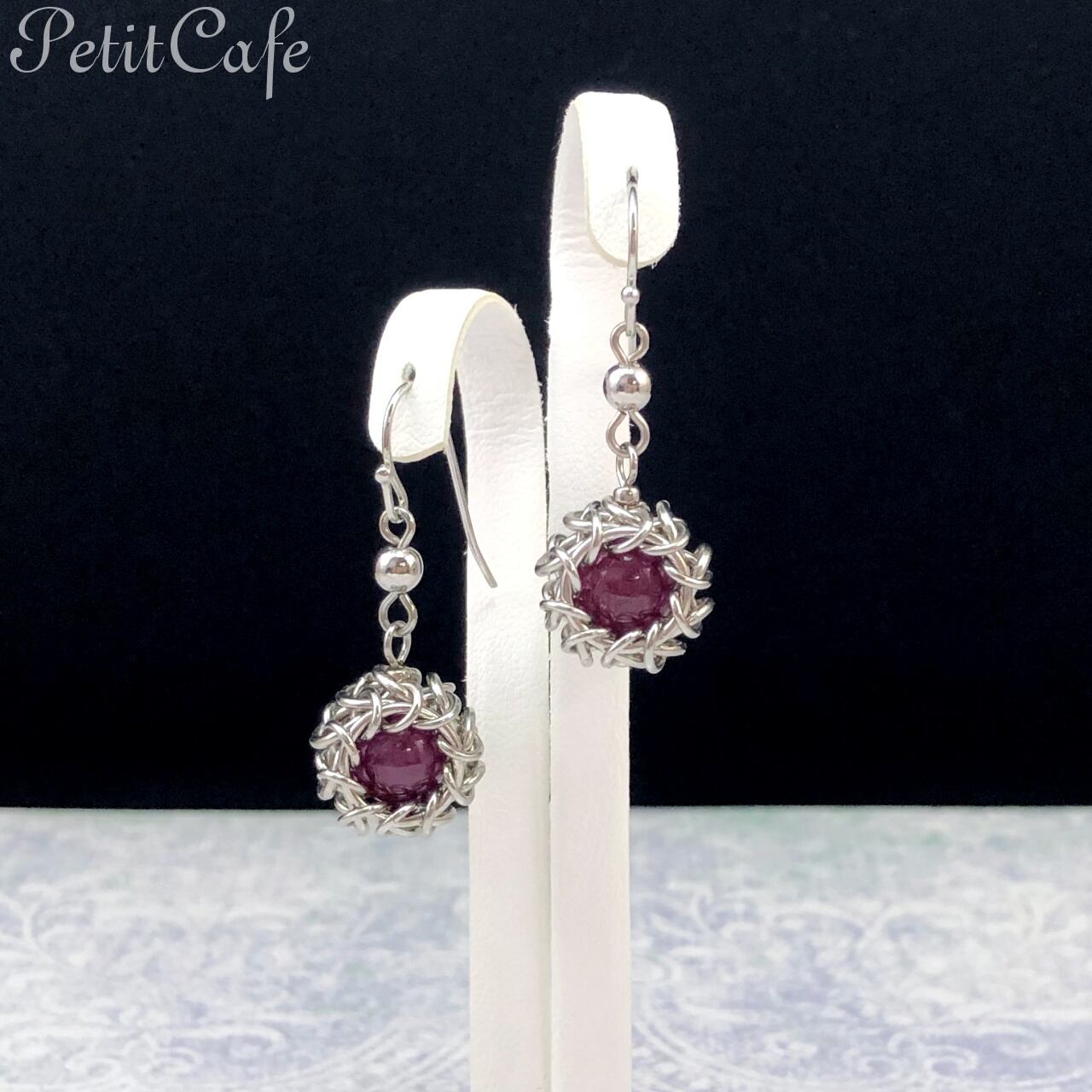 天然石&チェーンメイル(チェインメイル)のピアスです。