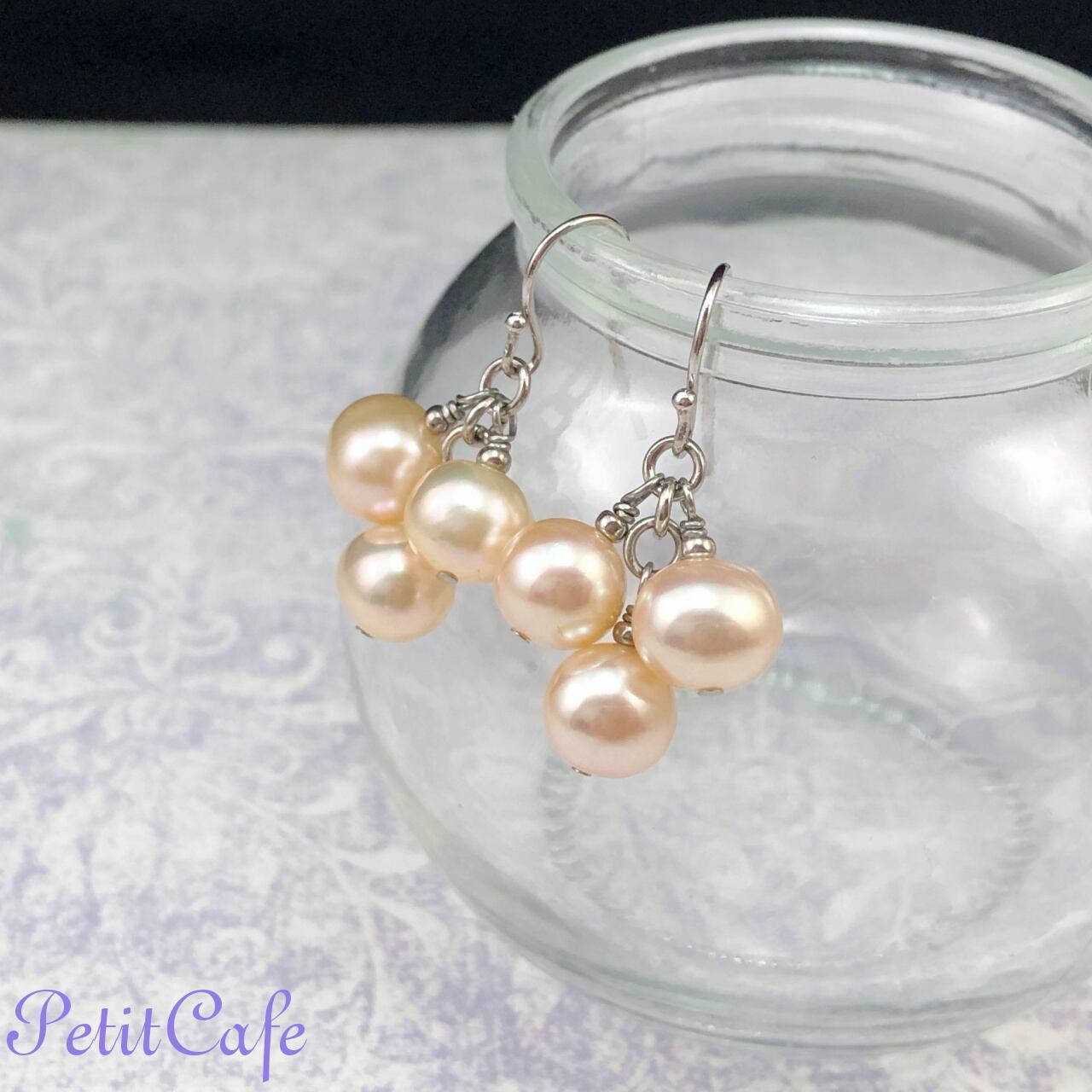 約8~8.5mmの淡水パール3個が揺れるデザイン。