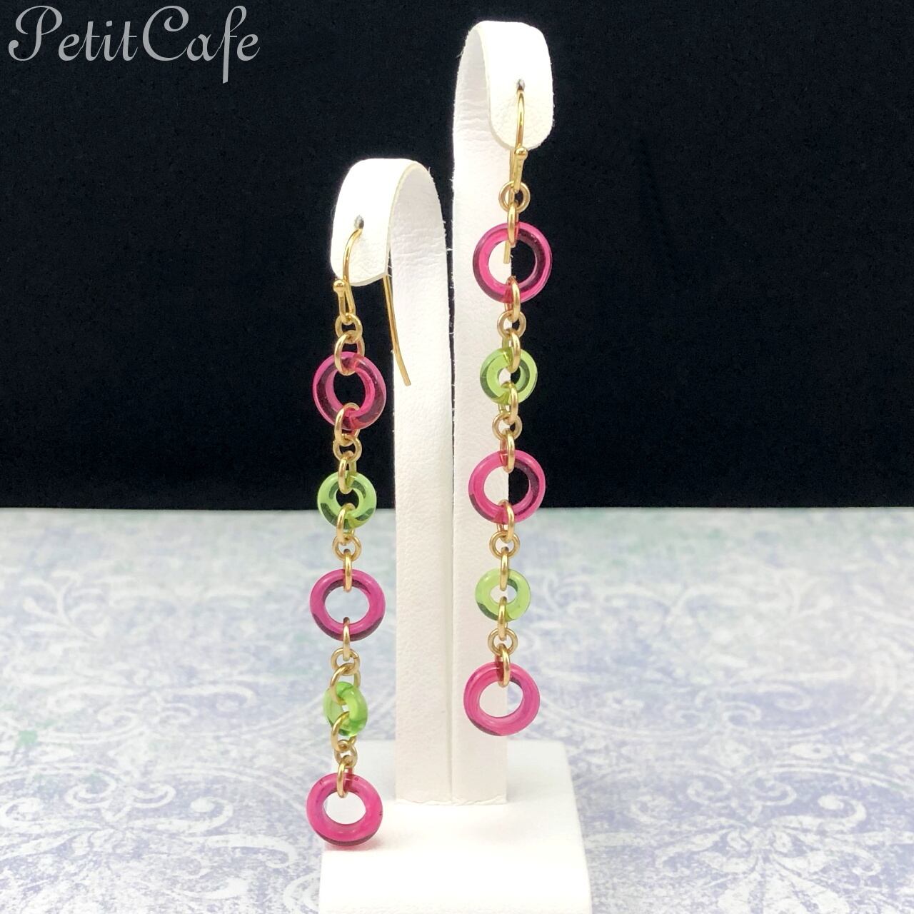 直径9mm前後と6mm前後のドーナツ型ガラスビーズをシンプルに繋ぎました。