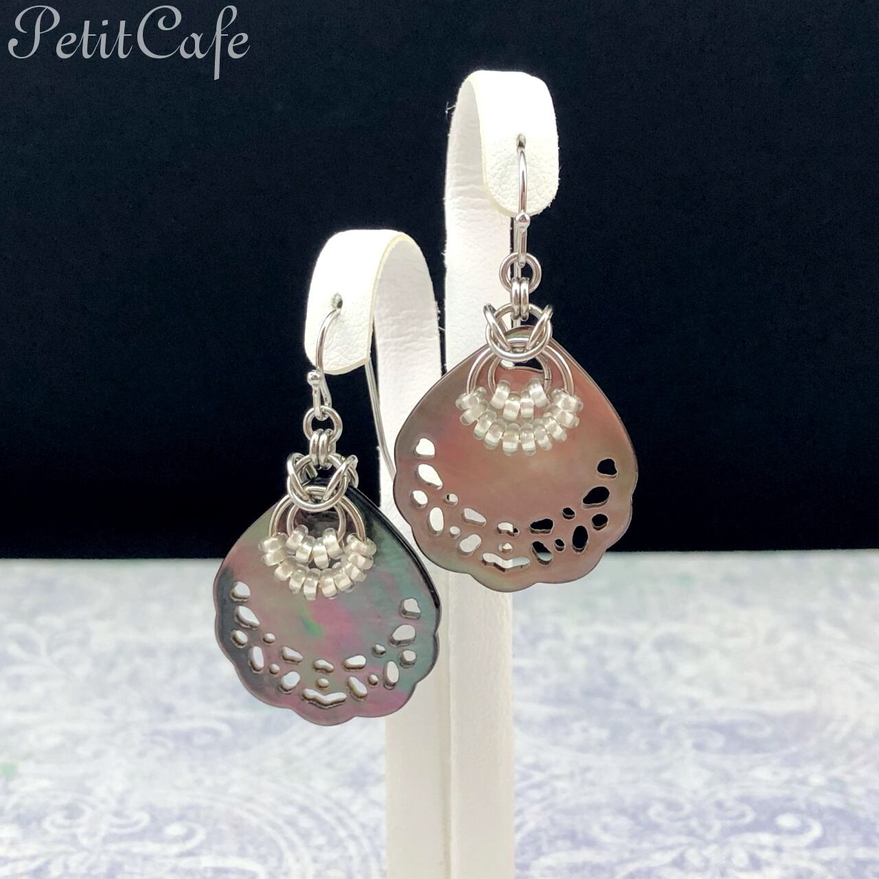 シェル&チェーンメイル(チェインメイル)のピアスです。