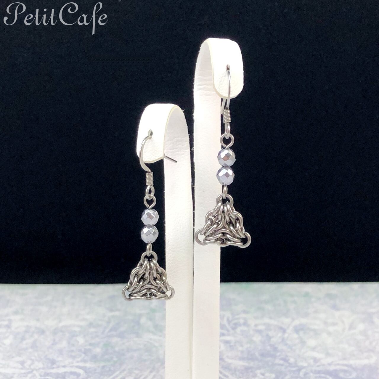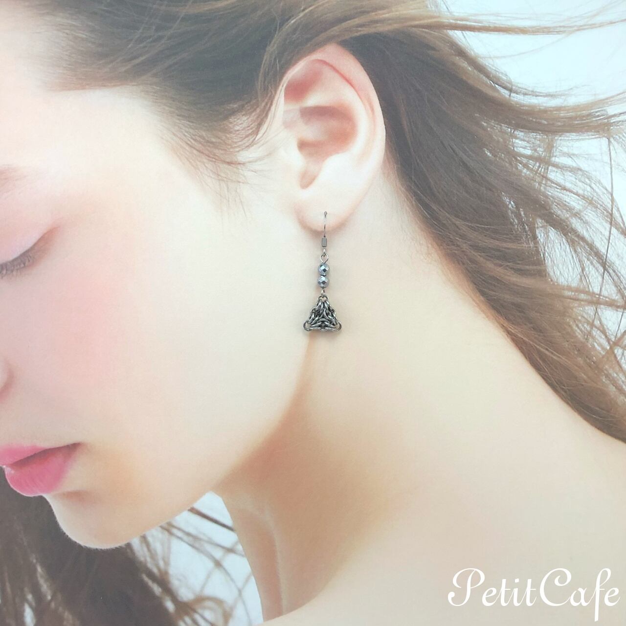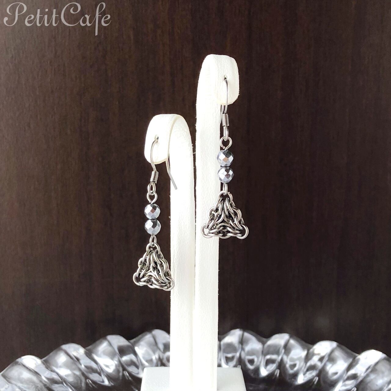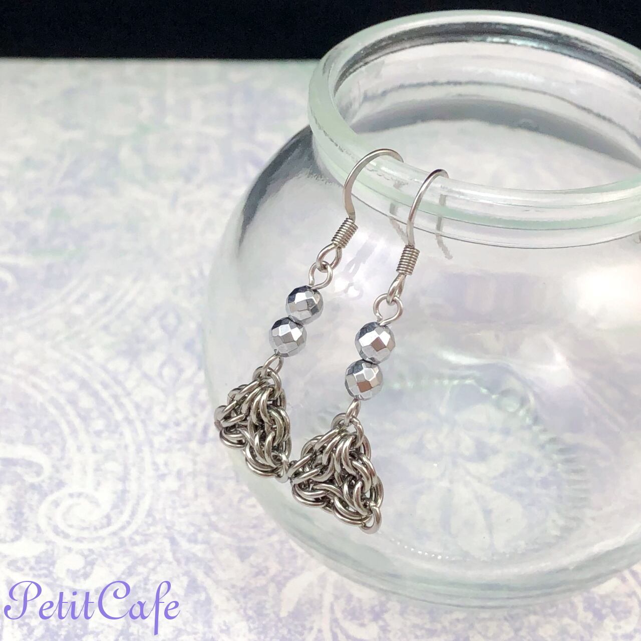 天然石&チェーンメイル(チェインメイル)のピアスです。