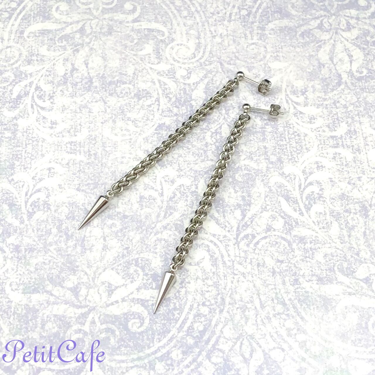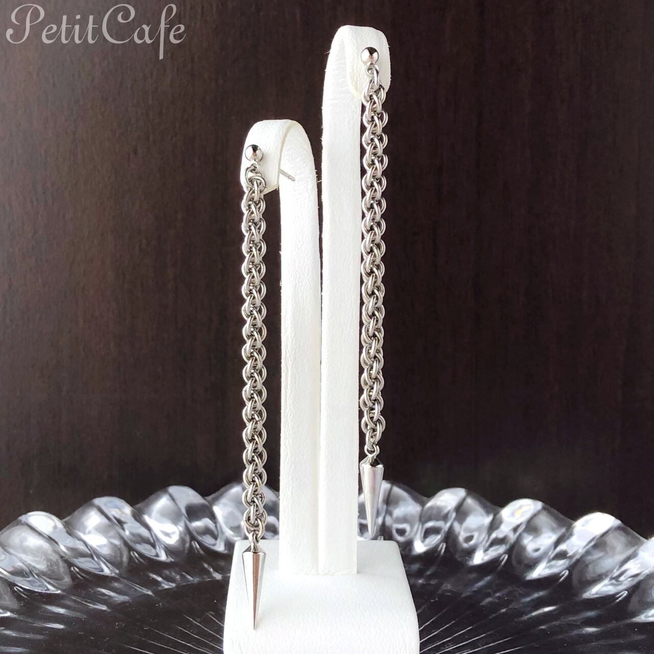 長めに組んだ筒状のチェーンの先に円錐形のチャームを付けました。