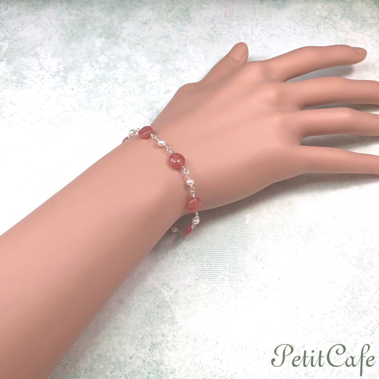 ロードクロサイトと淡水パールのブレスレット<BR-495>