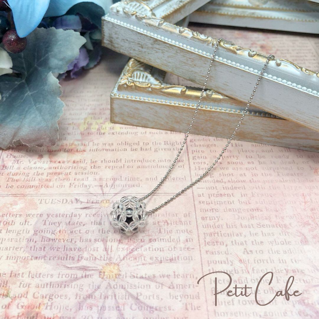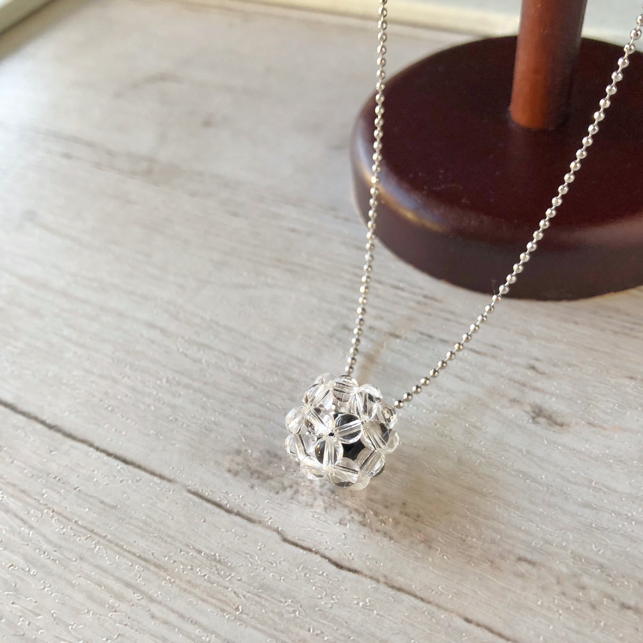 3ミリの水晶をテグスで編んだボールの中にオニキスを閉じ込めました。