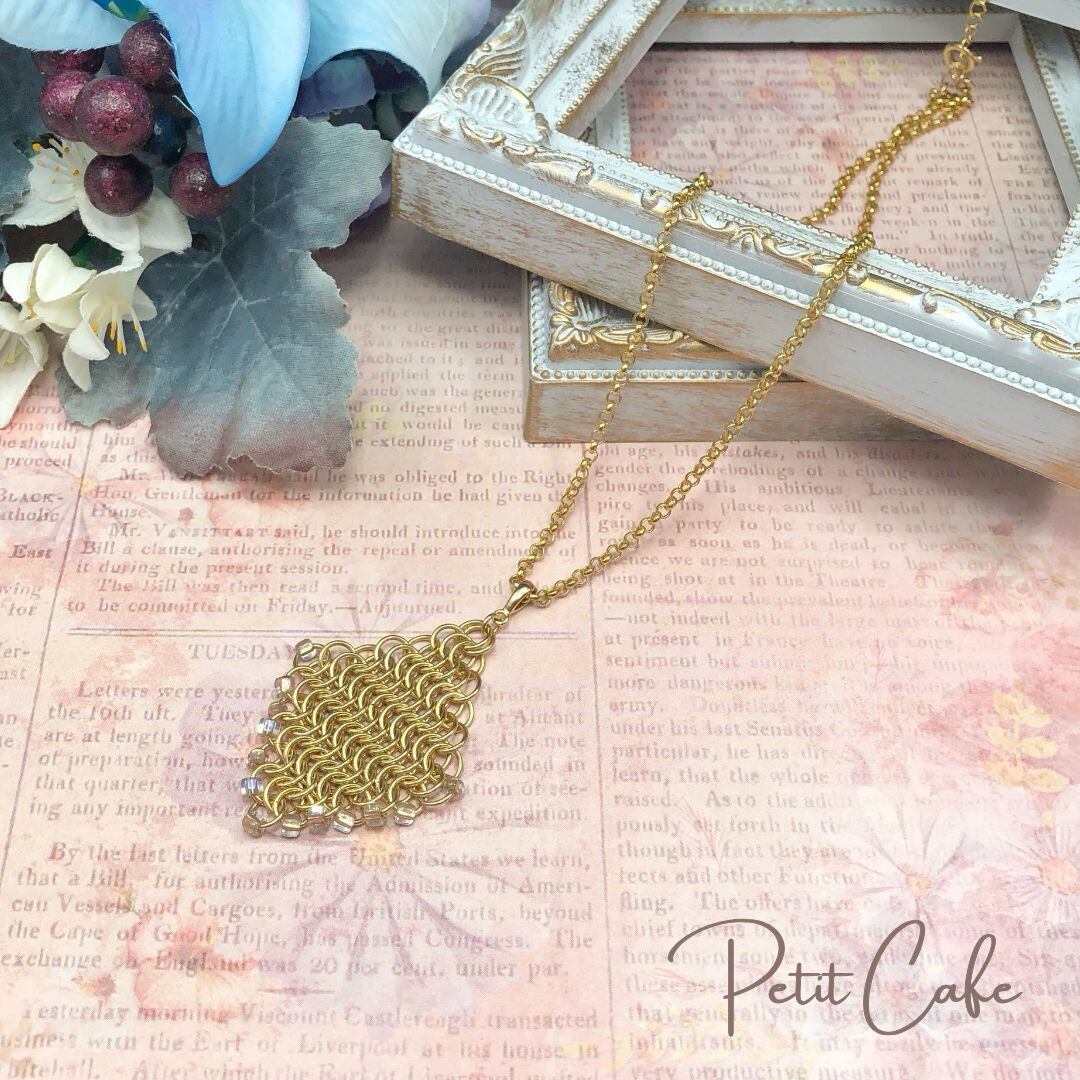 European 6 in 1 のダイヤモチーフの下半分の縁にだけシードビーズを通しています。