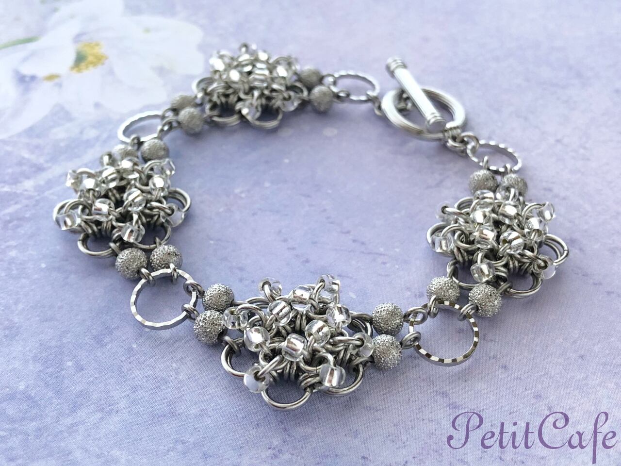 Japanese 12 in 2 の土台にシードビーズを通した丸カンを加えた立体的なモチーフです。